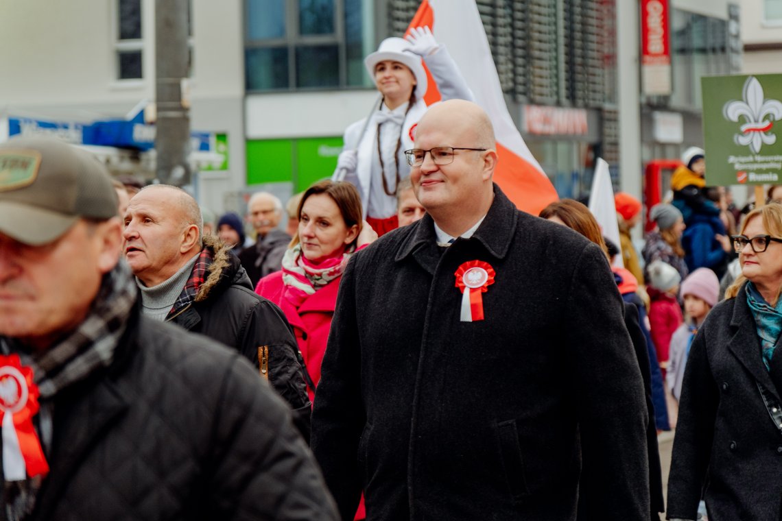 Bardzo się cieszę, że mieszkańcy Powiatu Wejherowskiego tak licznie pojawili się tutaj w Rumi. Co roku chcemy w innej gminie organizować uroczystości, aby podkreślić jedność naszego powiatu i wspólnie pielęgnować pamięć o historii. To bardzo ważne święto dla nas – dla naszych małych Ojczyzn i dla nas, Polaków – podkreślił Starosta Wejherowski Marcin Kaczmarek.